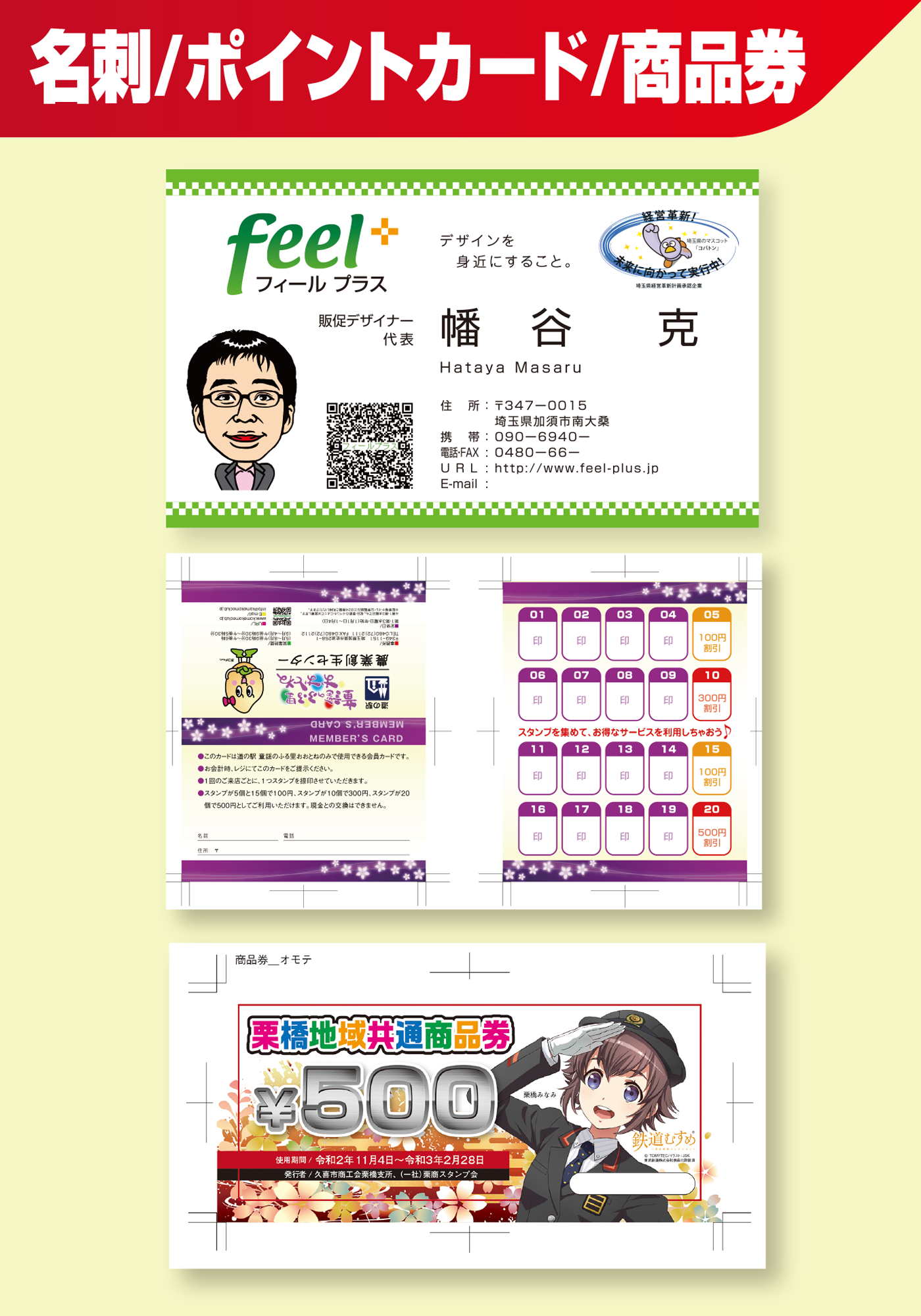 | 紙の種類:コート180kg、印刷の種類:4c・4/1・4/4、サイズの種類:91×55mm、170×54mm |