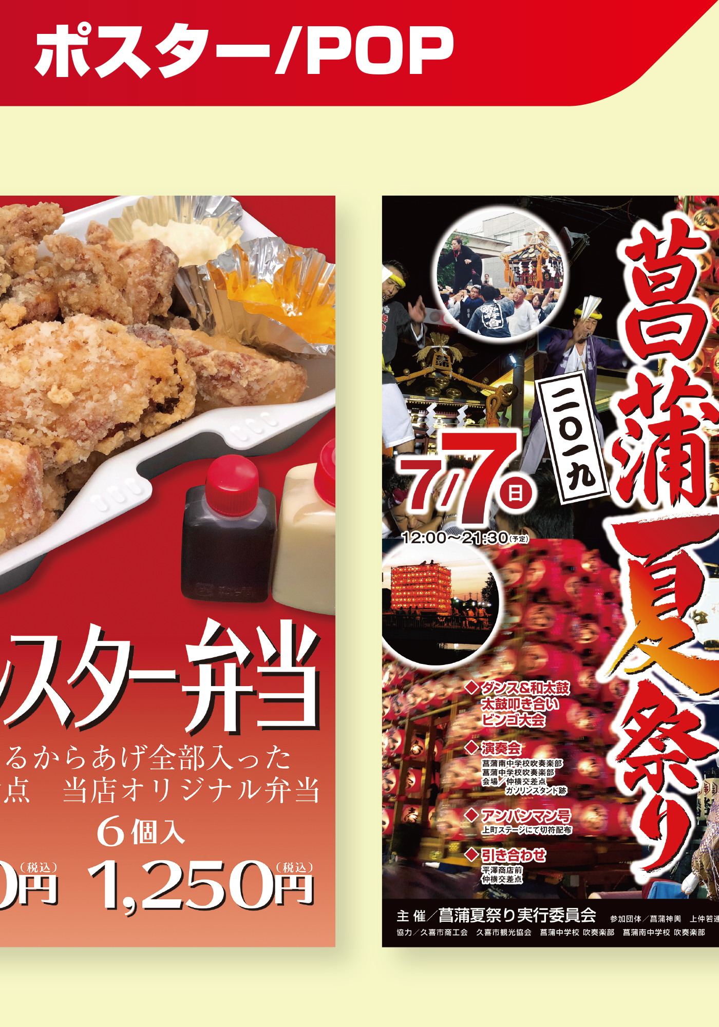 | 紙の種類:コート90kg、印刷の種類:4c・4/1・4/4、サイズの種類:A4・B4、A3・B3 |